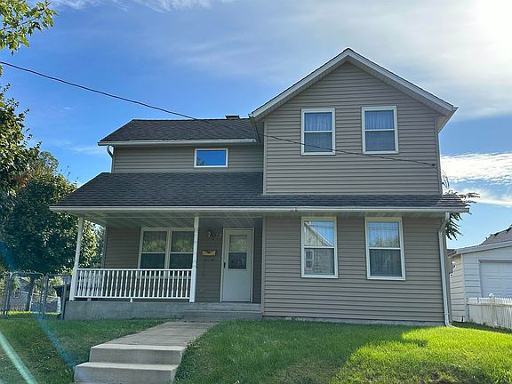 This 2 story home features 4 bedrooms and 2 full baths. On the main floor you will find a dining room, living room, eat in kitchen, full bath, and 1 bedroom. Upstairs you will find the addtional 3 bedrooms and a full bath. Washer and dryer hookup can be found in the basement. Outside you will find a fully fenced back yard with a 3 stall detached garage. Brand new furnace and centeral air 9/2023.