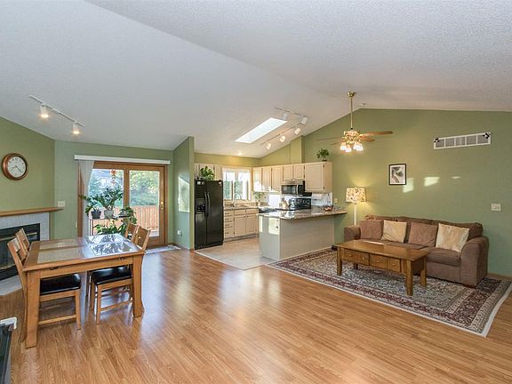 Updated 3-bedroom, 2-bath, 2-car garage zero-lot in move in condition. New in 2018: granite counters in kitchen & ALL bathrooms, professionally painted kitchen cabinets & added hardware, stools on bathrooms, vinyl flooring in kitchen & main bath, HARDWOOD flooring in main bedrooms, carpet in lower level, paint throughout, oven, duct work professionally cleaned. Immediate possession available! Skylight in kitchen, 2-fireplaces. Washer & Dryer Convey. Trails to Willow Creek park. On a Bus route.