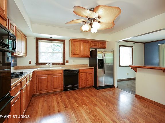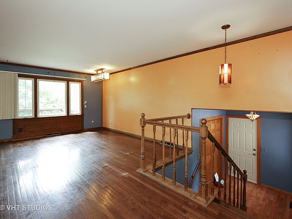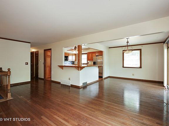 Great House, GREAT LOCATION, EAST of the FOX RIVER, Walk to Schools, Library, Community Pool, Parks & Tennis. Close to Bike Trails. Ground Level Mid-Entry Raised Ranch with a very large 2 1/2 Car attached Garage and Driveway. Main level has Open Floor Plan, Kitchen, Living and Dining rooms with access to Deck. Finished walk-out basement with access to screened patio. Fenced yard, nicely landscaped corner lot. The finished basement has a large family room with gas fireplace, 4th bedroom and full bath. This home sits on a Large Lot with Mature trees. It's ready for the next owners to bring it into the 21st Century, It's priced accordingly & could be the Dream Home that you have been looking for at a Very Compelling Price to call your very own. New Roof & Siding 2017, HVAC 2010, Appliances 2011. Includes a one year $600 AHS "Shield Plus" Home Warranty. All of this along with being Sold "AS IS". Quick close is available