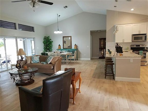 This is an Amazing Home and it screams Beauty, Serenity, Relaxation, Comfort & it's a Great Place to Entertain! It will Take Your Breath Away as you enter & See What Awaits You...Not Only a Gorgeous Remodel but a View that Money Can't Buy...Waterfront beyond the House, Pool, Lanai & Yard! It Truly is Tranquil just Standing There as the Trees Reflect in the Water. Discover the Essence of Style w/ the Huge Liv/Din/Kit Created to Maximize Entertaining! Quad Sliders that Split & Pocket into the Wall Lead You to the Covered Lanai & Pool. The Kitchen, Some would say the Lifeblood of the Home was Transformed, Supersized & will Put a Smile on Your Face w/ the 14' Peninsula that easily Seats 6 & Yet Provides Prep Space Galore, No Need to Worry About being Crowded in Here!! Did I Mention the Wine Rack & Frig...Bonus! The Master is Privately Tucked Away & Opens to the Pool, it is Oversized, w/ 2 Closets, A Completely Redesigned Master Bath w/ Split Vanities, Priv Potty & a Seamless Glass Shower w/a BI Dbl Niche, Seat & an Overhead & Side Faucet. The other 3 Bdrms are Stacked on the Opposite Side of the Home The 1st of the 3 has a King Bed in it & the other two Easily Fit Queens! The Second Bath was also Gutted & is Lovely w/ Subway Tile & a Designer Band in the Tub & there's a New Vanity w/ Granite. New Flooring, New Lighting, Wall Receptacles Thruout & the Roof is 1 Yr Old, New A/C, Invisible Fence, All New Sprinkler System & New Landscaping. Boat/RV Storage Beside the Gar Behind Fence.