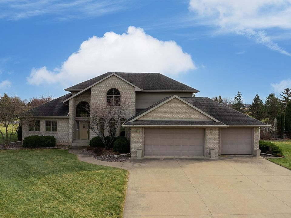 Beautiful custom built 2 story brick home on over 2 acres. Located on private cul-de-sac bordering golf course with over 500 feet of golf course frontage. Home boasts 4 bed/3 bath, master suite on FF w/walk-in closet, tile shower, jet tub. Quality abounds in this home complete with large gourmet kitchen, large granite island, custom cabinetry, dbl side brick fireplace and hardwood floors. Landscaped private setting w/multi-level outdoor entertaining areas plus screen porch, outdoor pool and hot tub. Large first floor laundry/mudroom and attached 3 car heated garage. Spectacular & peaceful views of wildlife makes this town of Winneconne property truly one-of-a-kind! Home and pool warranty included.