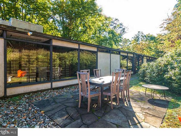Bucolic, Serene, Mid-Century. In a bright forest glade at the top of a breathtaking drive lies this authentic Mid-Century home on 6.29 acres. Mid-Century architects allowed themselves to be inspired by the landscape, trees, and rocks and designed their homes to marry seamlessly with the natural surroundings. Maximum light exposure, utter privacy, and peaceful outdoor living spaces are only a few of the benefits. With beautiful works of natural art out of every window, this property offers everything you've come to expect from a Solebury home including a large garage, separate workshop, studio space, an ample kitchen and entertaining areas. A wonderful place for a respite, this home offers 5 outdoor patios and terraces as well as two wood-burning fireplaces for cozy winter gatherings. Originally conceived as a 3BR 2.5BA house, the versatile floor plan would allow for more bedrooms, an inlaw suite, or guest house.