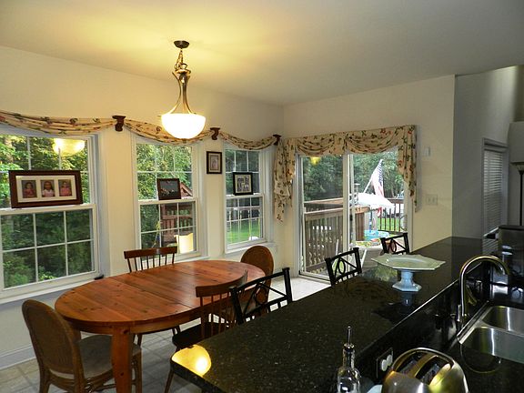 Unique kitchen design offers great space, granite counters, cherry cabinets, stainless appliances. 2 story foyer, fam rm & dual staircases. Retreat to mast suite with sitting rm, 3 closets & mast bathrm. Basement to die for. Projector, screen & speakers staying for new owner to enjoy. Great space to entertain & enjoy. Deck overlooking private wooded acreage. Great community & commuter location.