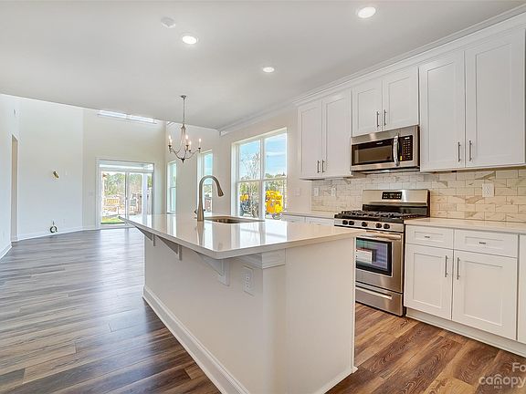 Proud to be named 2023 Builder of the Year, by the Home Building Association of Greater Charlotte! This Cary plan is an end unit with just over 1,800 square feet. The primary suite is on the main level, along with a two-story great room and kitchen/dining area. The primary bath has a double-bowl vanity & a semi-frameless shower door. All baths feature quartz counters. The beautiful kitchen has white cabinets with crown molding, quartz counters, a ceramic tile backsplash, and stainless appliances, including a gas range. Beautiful and durable Enhanced Vinyl Plank flooring runs throughout the main living areas. The upper floor has two bedrooms, a loft, and a finished storage room/bonus room. This home has a covered rear porch and a privacy fence between rear yards. Pool & Cabana, Dog park, playground, & paved walking trail now open! Ask about special below-market fixed-rate financing!