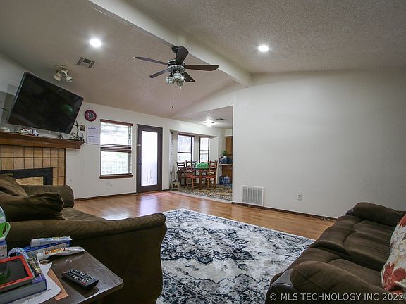 Great home in Golf Estates II on quiet cul-de-sac. Open floor plan. Easy access to Hwy 75 & close to shopping & dining @ Tulsa Hills Shopping Center. Jenks Schools. Newer stove, wood floor, and privacy fence.