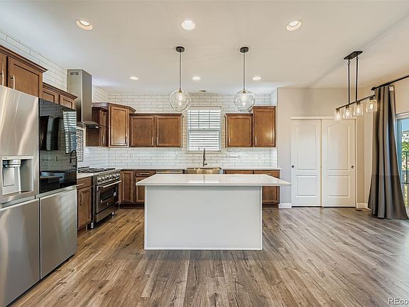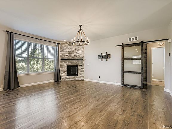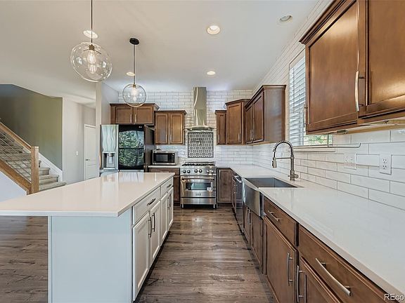 Step inside to discover a light filled living space where the kitchen, dining and living room flow seamlessly together. The chef-inspired kitchen features stacked subway tile to the ceiling, quartz countertops, a spacious island, chef-grade appliances including a gas range, a farmhouse sink. The adjoining dining room opens seamlessly to the patio, creating the perfect setting for everyday meals or gatherings with friends. Anchoring the main floor, the living room showcases a gas fireplace framed in dramatic floor-to-ceiling stacked stone with a warm wood mantle. A versatile bonus room on this level offers endless possibilities home gym, office, or guest bedroom. Head upstairs to find the primary suite, which feels like a retreat in itself with its bold accent wall & soaring vaulted ceilings. Push back the barn door to discover the spa-like primary bathroom, complete w/ dual sinks, quartz counters, & a glass-encased shower. Upstairs, convenience meets design w/ a second-floor laundry room, a spacious hall bath, and three generously sized secondary bedrooms. The finished walkout basement truly sets this home apart. Complete with a full second kitchen and laundry room, it offers the ideal setup for multi-generational living, extended guest stays, or even the potential to offset your mortgage with rental income. Whether you envision a private apartment, an entertainer's dream with a second gathering space, or both, the possibilities are endless. Outside, the landscaped, zero-maintenance yard makes enjoying Colorado's seasons effortless. With a paved patio, lush turf grass, & an additional patio space for dining or lounging, it's designed for relaxing weekends, summer BBQs, & evenings outside all while overlooking the tree-lined open space behind. With a 3-car garage, access to top-rated Cherry Creek Schools, & a prime location within walking distance to Southlands shopping, dining, and trails.