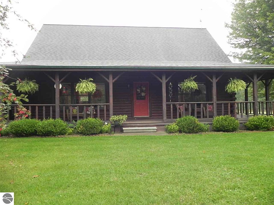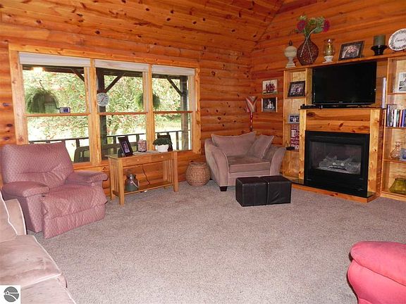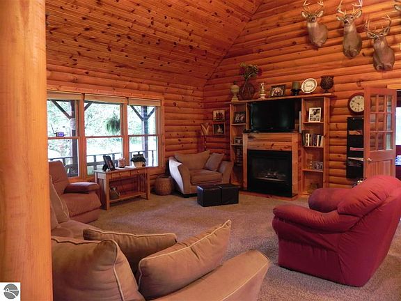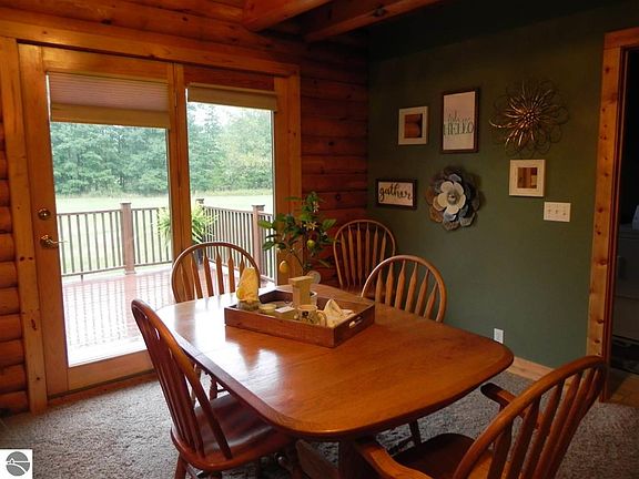 Enjoy everything this Country Setting has to offer in this 2 Bedroom Log Home! Home is perfect for Entertaining with Great Room Area and Fireplace. Enjoy the Living area windows for Great Views of 12 acres of wooded land, wildlife galore and country landscaping! Home has covered wrap around porch and new deck with Trex Flooring for outdoor enjoyment. The property includes 24x40 pole barn which also can be used as detached garage! Must see to appreciate!