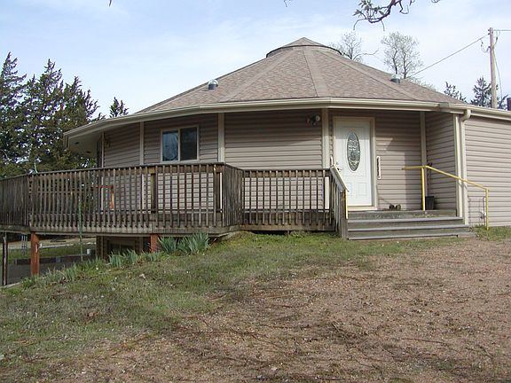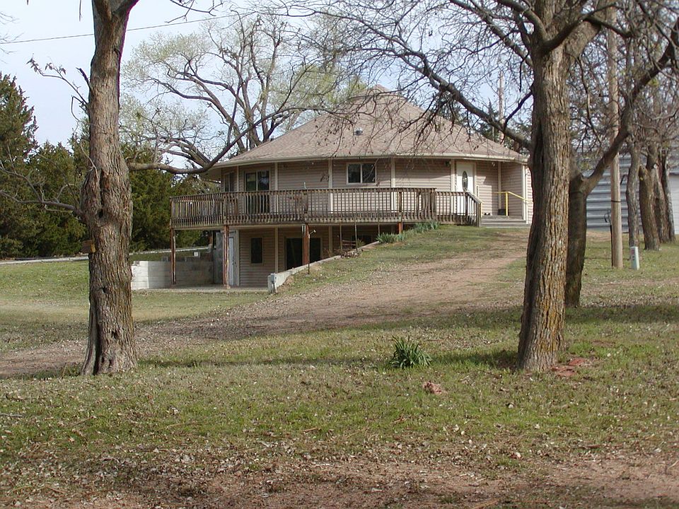 10 +/- secluded acres in the country. Unique one of a kind Deltec-round home with open floor plan and walk-out basement. Main floor has 1852 sq. ft. finish, full appliances, stainless steel, 2 bedrooms, 2 bath, cathedral ceilings; basement is unfinished but does have a full finished bath. Several out buildings, 3 Arch-rib Quonsets, a 24x30, 40x80, and 26x30. Only twenty minutes west of Hutchinson and just a hop off Hwy 50.
