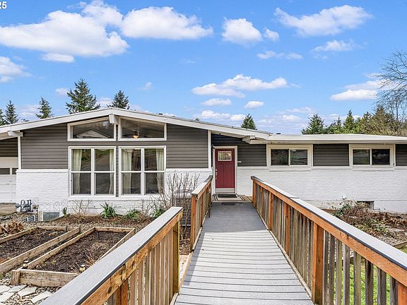 You'll feel right at home the moment you step into this Mid Century Atomic Ranch in the heart of Bridlemile—where style, space, convenience, and summer fun collide! With 6 bedrooms, 3 baths, and updates throughout, this home is as functional as it is fabulous.Inside, you'll find beautiful wood flooring on the main level and durable LVP in the finished daylight basement, making every space stylish and practical. The large updated kitchen with stainless steel appliances and quartz countertops, while the dining area’s French doors open to a spacious synthetic wood deck—perfect for sipping coffee, BBQ days or hosting gatherings.Downstairs, 3 large bedrooms (see floorplan), Ample space with a great room and family room as well as a bathroom and large laundry room, complete with a laundry chute for added convenience.Need storage? No problem! Closet organizers in every bedroom and two HUGE storage spaces (620 sq ft) on the back side the house mean you’ll have a place for everything. Have an RV or extra vehicles? The spacious front driveway offers dedicated RV parking, making it easy to store your adventure-ready rig right at home! The new plumbing (2020) adds peace of mind, while the fully fenced backyard with an in-ground pool heated pool with a fun LED light system is an entertainer’s dream. With 3 bedrooms up and 3 down, plus basement access to the backyard, this home offers flexibility for guests, multigenerational living, or your dream home office. Two photos were from the summer when the banana trees are lush and beautiful! Don’t miss your chance to own this Bridlemile gem!