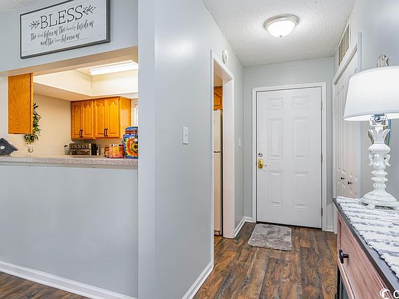 Welcome home to this beautifully kept 2 bedroom, 1 full bath home in the desirable Myrtle Beach Golf & Yacht community! This home features new luxury vinyl plank flooring throughout, a galley kitchen with a breakfast bar pass through and ample counter and cabinet space, and an open living and dining area with plenty of natural light. The master bedroom includes a ceiling fan, large "his and hers" closets, and a private entrance to the vast relaxing rear deck. Myrtle Beach Golf & Yacht residents enjoy a community pool, clubhouse, and tennis courts. The location allows easy access to major roads, just minutes to the beach, and all the shopping dining, and entertainment the Grand Strand has to offer!