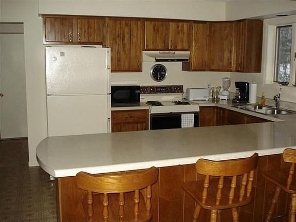 The 2 bedroom 1 1/2 bath cottage has 102 feet of frontage on beautiful Bear Lake. Built in 1986 by the owner this 1100 sq Ft home has spectacular views of Bear Lake and the woods across the water and it's own dock. The cathedral ceilings make the open floor plan roomy along with the huge sliding glass door onto the deck. A wood burning stove will take the chill off the evenings. An attached garage is large and has two entries into the house. The huge basement is finished and has multiple rooms that could serve many functions. Also included with the house are the furniture and TWO boats. One boat is a fishing boat with motor and the other a nice pontoon boat for floating the days away on the lake. There is also a lawn tractor that comes with the deal. What more could you ask for? Come see this one