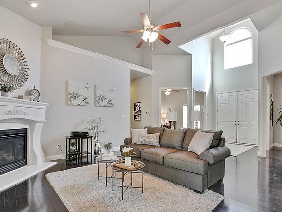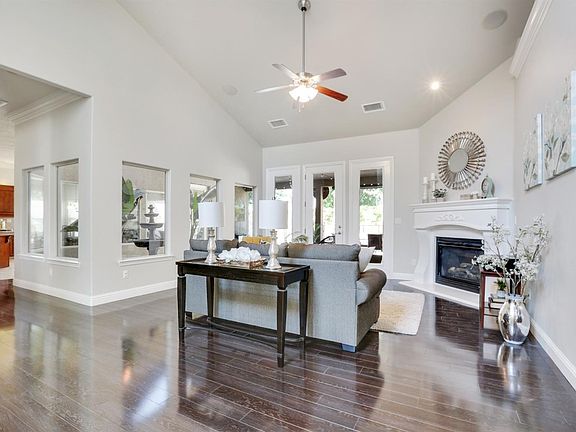 Exquisite home in desirable Pinnacle at Oak West! This gorgeous home welcomes you with a grand semi-circular drive way, well-manicured landscape and an inviting double door entry. Impressive details make this house a home. From alluring laminate wood floors, soaring ceilings, and sky-lit atrium to the 8 ft. doors and beautiful crown molding and trim you will love every inch of this well-designed living space. The very open and functional kitchen offers gorgeous granite counters, double ovens, stainless appliances and a large breakfast bar. This home also includes 3 spacious bedrooms, 3 full bathrooms, elegant formal dining, an executive office, two fire places and an oversized laundry room. The extensive master suite offers his and hers closets and a luxurious master bath, with a grand soaking tub, a large shower and his and hers vanities. The backyard has an expansive covered patio, a sparkling pool and a large yard to play and entertain. Don't miss out. Call today!