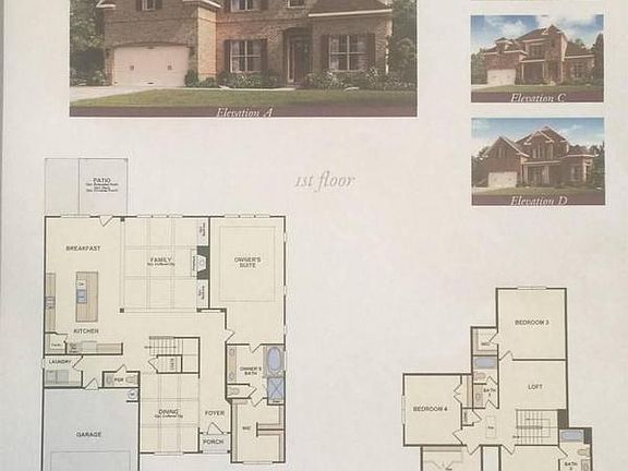 Mayflower D Elevation is a master down home featuring 5 bedrooms and an open kitchen ideal for entertaining. This home has 10 foot ceilings on the main and offers an elegant coffered ceiling in the dining room with inlayed crown molding. The three car garage is standard in neighborhood and this home is situated on a quiet cul d'sac backing on to a natural spring fed lake. Photos are not the actual home they are a representation only. Home to be built.