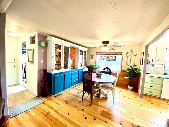 Beautiful turn-key home is welcoming upon entry. Most of the house has been upgraded in recent years. Includes a 384 sq/ft shop/art studio w/attached carport. Recent interior upgrades in the last 4 years: New HVAC TRANE heat pump & furnace, new carpet, oven & microwave, custom kitchen backsplash, w/lighting + island. Speed Queen washer & dryer, ceiling fans, new 110 volt outlets & switches, light fixtures, code compliant wood stove. Past upgrades include new exterior paint, extensive landscaping w/drip irrigation, 8' X 12' storage shed, 2 rear decks, aluminum siding, aluminum metal roof, covered front porch, mini blinds, vinyl clad dual paned windows, exterior skirting & woodshed. Accent pine walls & wainscoting complete this happy home with plenty of open space. 55+ community w/monthly space rent $620 inc. water, garage and sewer. Owner occupy only. No sublease. Manufacture home only. NO LAND. 3 times monthly space rent income req, Credit & background check required for park approval.