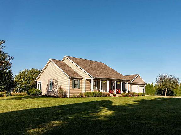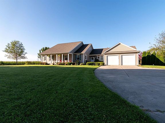 Beautiful 2,500 sq ft ranch home on 1 acre of land surrounded by cornfields! Split style bedrooms, huge 4 season sunroom, tall ceiling, custom trim work, pocket doors, large laundry and spacious mud area. Lower level is waiting for your perfect touch! Plumbed for a full bath, multiple lookout windows and a secondary staircase leading to the garage. This home is close to shopping, schools and restaurants while still having a quiet setting. Call today for your private showing.