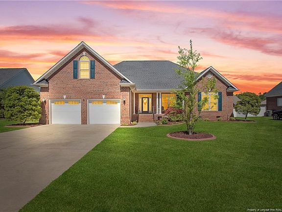 Custom built elegant brick ranch in exclusive Fairfield Farms community; home features substantial finishes and details throughout, starting with incredibly well manicured lawn and landscaping; welcoming double sidelight entry door, grand entrance with hardwood flooring, large dining room w/fireplace and trey ceiling, gourmet kitchen with upgraded granite countertops, light fixtures, over/under cabinet lighting; kitchen w/island, breakfast bar and eat-in-area overlooks great room with fireplace; very open floor plan; large master suite w/trey ceiling, plenty of natural light, double vanity, large jetted garden tub and 2 walk-in-closets; 2 additional bedrooms downstairs and bonus up, could be 4th bedroom; absolutely fantastic home in convenient location close to 295, Fort Bragg and all that Fayetteville has to offer