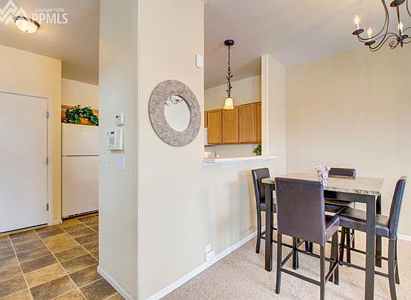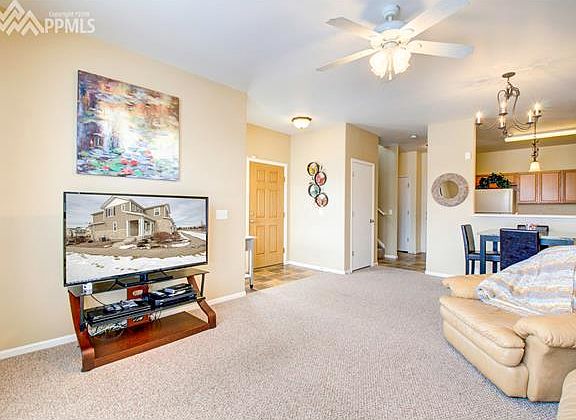 Great end unit townhouse conveniently located in the Powers corridor. Close to everything! This unit has 2 suites one with double sinks and walk in closet the other with double closets. The unit also has a vaulted ceiling in the upper level and loft area that makes this unit bright and open. The main level has a large kitchen with lots of countertop space and a breakfast bar peeking into the living room and dining room combo the attached 2 car garage will fit most any car(s). One of the best located units.