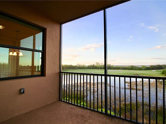 Outstanding 2 bedroom, 2 bath, 3rd floor condo offering spectacular water and golf course views in one of Manatee County???s premier, resort-style communities, River Strand at Heritage Harbour. This popular Brookside model has a great open floor plan that features exceptional finishes including loads of crown molding and diagonal-laid tile throughout the main living space, high-impact, hurricane protected doors and windows and beautiful upgraded engineered plank-style flooring in both bedrooms. The kitchen is equipped with granite countertops, wood cabinets, breakfast bar, built in microwave, and a professional-style Kitchen Aid 5-door/bottom freezer refrigerator! Additional upgrades include the latest 20X20 ultra fine mesh screening for the lanai/balcony. Relax with your morning coffee in the screened lanai/balcony while enjoying the magnificent views of the Manatee river and holes number 5 and 6 of the Sanctuary course. Live the dream with all the resort-style River Strand amenities; 39,000 sq ft clubhouse featuring an excellent full-service restaurant, fitness center, 8 lighted Har-Tru lighted tennis courts, Pickle Ball courts, resistance exercise pool and multiple heated pools with the SOCIAL membership included with purchase. The convenient location provides easy access to I-75 and a short drive to area beaches, the downtowns of Bradenton, Sarasota and St Pete, airports, shopping and restaurants. Maintenance FREE living at its finest.