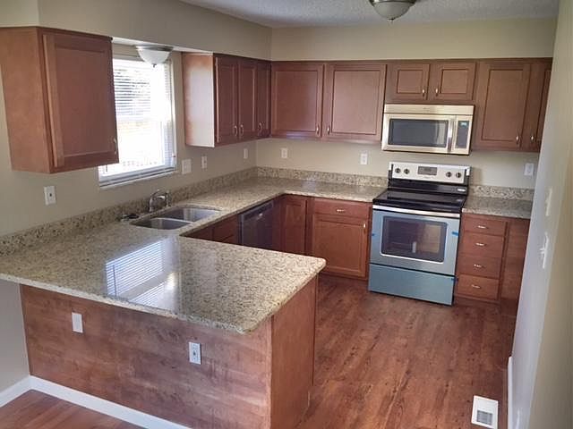 Your dream kitchen awaits. The completely brand new open kitchen provides stainless appliances and beautiful new granite. Plus the breakfast bar is a perfect spot to enjoy your morning coffee. The new double door heading out to the fenced in back yard fills the living and kitchen area with tons of natural light. You will love the huge living room with soaring vaulted ceilings. The first floor master has a newly remodeled bath with double vanity and a spacious walk in closet. Updated HVAC with insulated windows keeps the home running efficiently. Nothing to do but move in and enjoy your newly remodeled home.