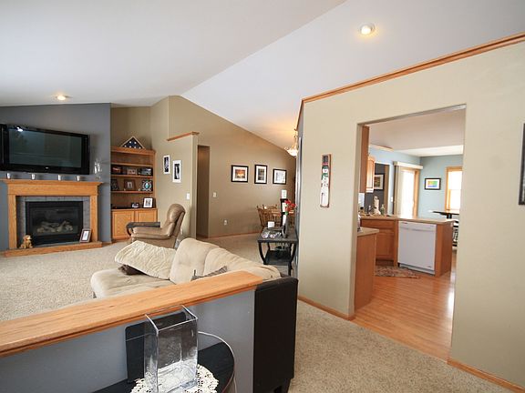 This is a beautiful 3 bedroom, 3.5 bath ranch home with neutral decor! Living areas feature vaulted ceilings and an open concept feeling. The living room gas fireplace is surrounded by two large oak built in bookshelves, which add character to the home. Large kitchen has oak cabinets, desk area and eat in dining room, surrounded by windows and patio door to the concrete patio. Formal dining area has vaulted ceiling as well. The master bedroom is a great place to unwind with ample space, vaulted ceilings, walk in closet and private bathroom. Need a fourth bedroom or an office? Downstairs you will find plenty of space in the bonus room for guests or an office! There is also a family room with look out windows and a gas fireplace, as well as a sitting area perfect for game night. There is TONS of storage space in this home as well. Small fenced in area off the three car garage is perfect for your pets. No need to drive all the way through Sandy Meadows Subdivision for this one! Just take Ross Ave to the roundabout and continue to the left curve onto Kramer Lane. Once you see Machmueller Park, turn left! Home will be on your left.