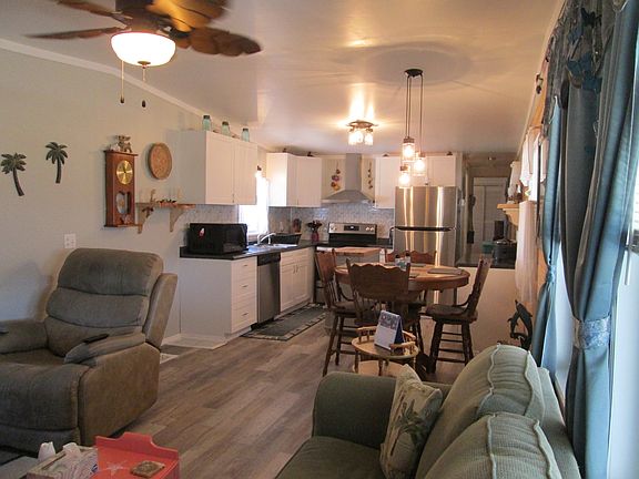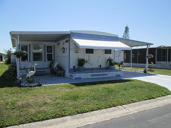 This 2/2 home has lots of upgrades including a new roof, 5 year old A/C, new windows throughout and soft close kitchen cabinets. The appliances are between 2-5 years old. It also has new laminate floors, R-13 insulation in ceiling and walls. It has drywall for walls and some tongue and groove on walls and bedroom ceiling. The plumbing is all new under the home as well as new fixtures. The main bath is under construction, so it will need to be completed, but is fully functional with new toilet and vanity. This is a must see. The home is located in the highly desirable tropical setting of 55 community Hawaiian Village and is close to many amenities to make living here very convenient. We are also pet friendly up to 25 pounds. Call today for an appointment. This one won't last long.
