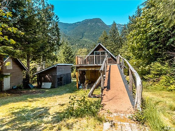 Stunningly Beautiful Property 9.46 Acres with 700'+ on the river. A 1056 SF Carriage House w/ wood stove, bath & wired to a 20 KW generator. Loft w/ 1 bed, 3/4 bath, kitchen, living rm & balcony's on each end. A camp site w/ fire pit, portable water, room for several RV's on a local fishing hole. Meadows with large conifers. Out buildings, fruit trees, open space for gardens & recreation. The perfect place in the wilderness. IT HAS IT ALL House need some work. NO neighbors in site offered ASIS