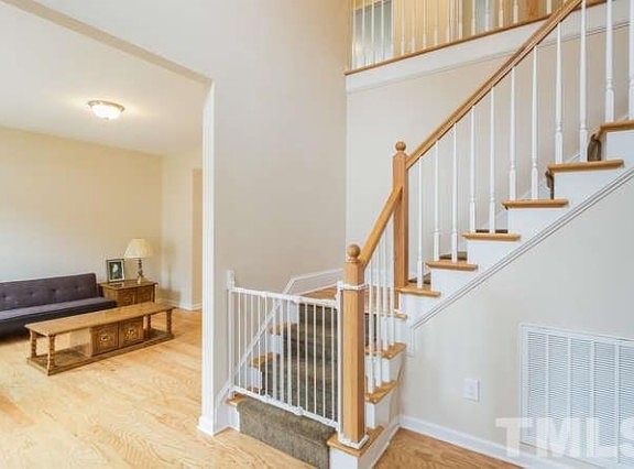 Enjoy the perks of living in quiet setting while still being just a short drive to Raleigh! Home features great living spaces w/ neutral color throughout. 2 story foyer. Living & Dining Rms w/ hardwoods. Family Rm w/ fireplace & great natural light. Spacious kitchen w/ stainless appliances, granite, center island, pantry, dining area. Awesome Master Suite w/ 2 WICs, dual sinks. Landscaped yard w/ deck, paved stone patio & walkway all w/ view of woods. Home has central vac. Wired for invisible fence.