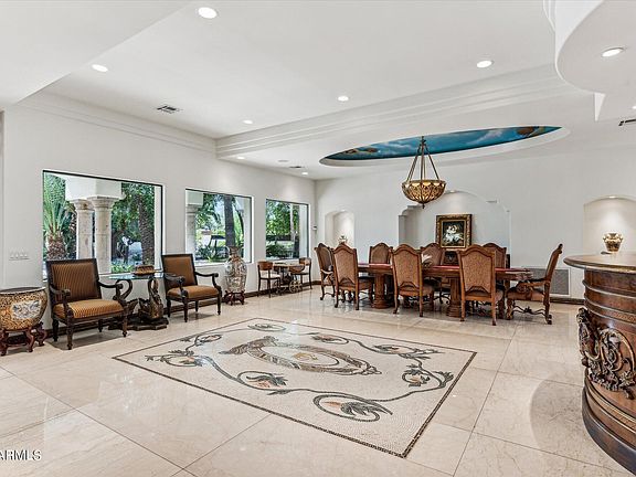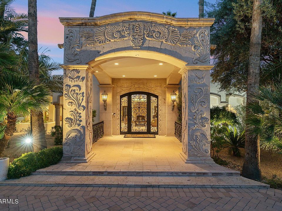 Welcome to Casa Linda, a 1.74 acre oasis in Paradise Valley! This gated estate exudes a resort lifestyle with 3 pools, spa, sauna, sport court, and green landscape (on a drip system). Ideal for a car enthusiast, the property has a 4-car attached garage and a detached 6-car garage with RV drive-thru. An entertainer's dream, enjoy a chef's kitchen with Lacanche range, wine room, theater, game room, putting green and more. The main home features a split master wing, 3 add'l ensuite bedrms and separate office. The custom home boasts hand-carved doors, mosaics, ceiling murals and stone. A detached 5 bd/5ba guest house is great for long term guests or extra purpose rooms (exercise rm, second home office). Enjoy this retreat while being located minutes from Scottsdale's best dining and shopping!