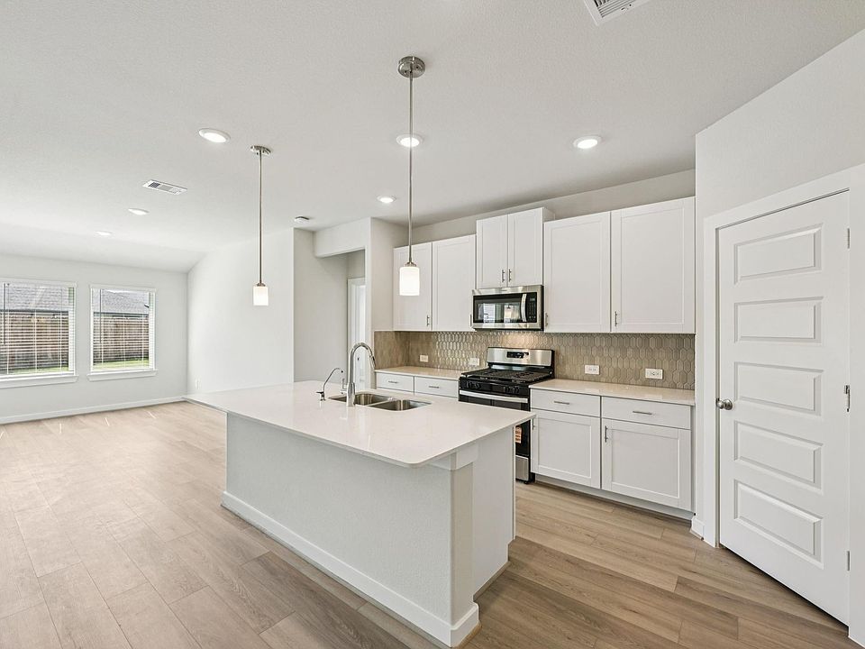 Brand new, energy-efficient home available NOW! Stock up on everyone's favorites with plenty of room in the walk-in pantry. White cabinets with white quartz countertops and aloe backsplash, brown tone EVP flooring with multi-tone carpet. From the mid $300s. Escape the bustle of the city without adding to your commute. Located in popular Pearland, Massey Oaks combines outdoor amenities like lakes, parks, and trails with everyday conveniences like access to shopping, dining, and entertainment. The neighborhood is zoned in the desirable Alvin ISD. We also build each home with innovative, energy-efficient features that cut down on utility bills so you can afford to do more living.* Each of our homes is built with innovative, energy-efficient features designed to help you enjoy more savings, better health, real comfort and peace of mind.