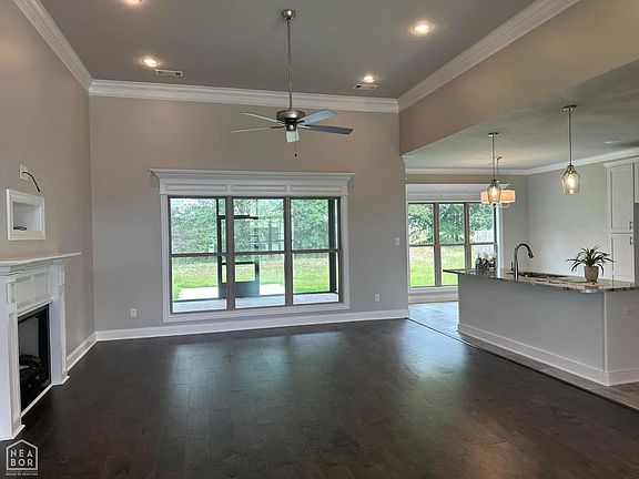 New construction home located at 6412 Julia Ln in Merrell Estates Subdivision. This new home features four bedrooms, three full baths and one half bath. Large living room with lots of custom decorative crown molding, hardwood floors and a fireplace. Spacious kitchen with granite countertops, stainless appliances, island and a seperate breakfast area. Home also features a formal dining room with beautiful trim design and a powder room. Large master bedroom with tray celing. The ensuite master bath features a large walk-in tile shower, soaker tub, double vanities with granite countertops and a large walk-in closet with built-in shelving. There are two more bedrooms on main floor with a jack and jill bath and double vanities with granite countertops. The large fourth bedroom located upstairs also features a full bath. Also convenient as you walk in from garage is a mudroom/bench with cubbies. Large laundry room with built in cabinets. Large covered screened in back porch with an additional outdoor patio. Home also backs up to lots of trees and has lots of privacy with no homes located behind the property. Home also features spray foam insulation. Builder is a licensed realtor. Listing agent is related to builder.
