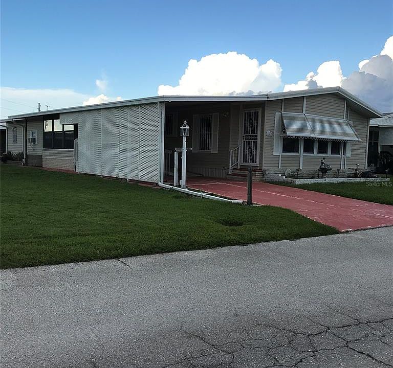 Enjoy this well kept and updated 2 bedroom 2 bath manufactured home in 55 plus community. Large open floor plan for entertaining. Large living room. Bamboo wood and tile floors. Kitchen has newer cabinets, granite countertops and backsplash and island with butcher block top and breakfast bar. Inside laundry. All appliances stay. Additional 12 x 12 enclosed Florida Room to enjoy. Huge shed with large open workshop area. This is a "no pet" lot. $34 monthly HOA dues include use of the community heated pool, clubhouse, shuffleboard court and RV lot. Near restaurants, doctors, hospitals, an shopping. Close commute to Orlando and Tampa Airports and Disney and Epcot and Busch Gardens.