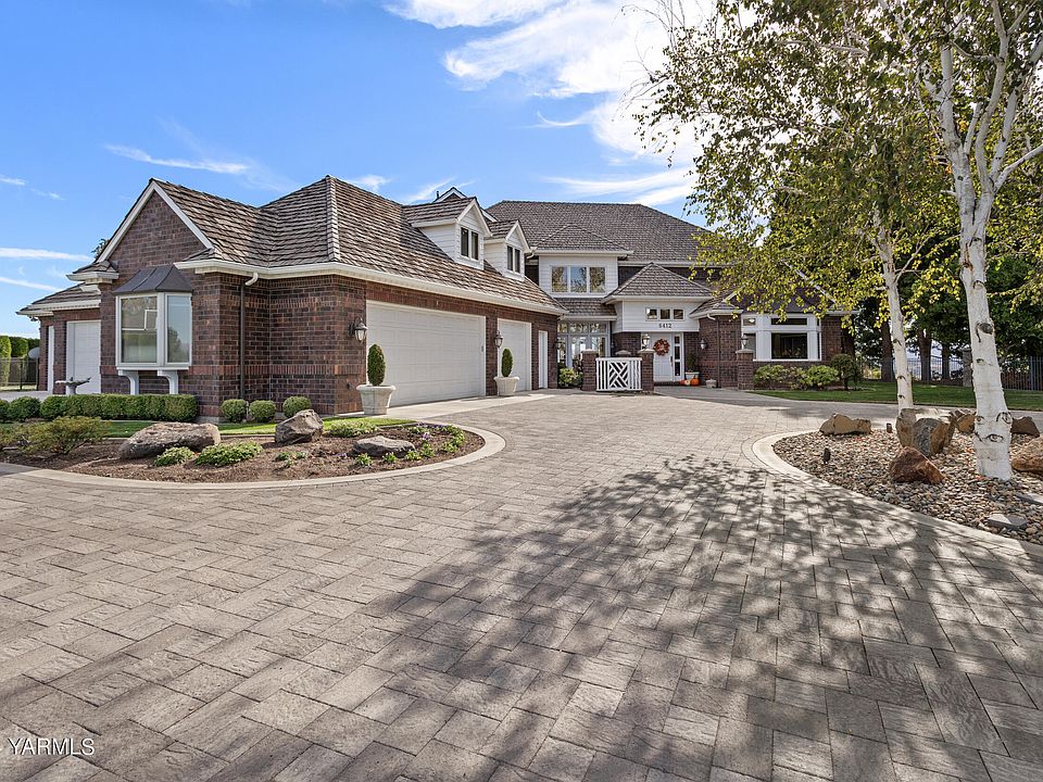 Welcome to 6412 Scenic Drive, a beautifully crafted all-brick home in Yakima, WA, built with the highest quality by Myron Abrams Construction. Listed at $1,595,000, this expansive 5,272-square-foot home offers luxurious living with an impressive six-car garage featuring oversized bays, belt drives, and openers. As you enter the private, gated, paver driveway, you'll be greeted by the peaceful surroundings, with the home set back 100 feet from Scenic Drive. The residence boasts stunning southern valley views, year-round picturesque sunsets, and Mount Adams as a backdrop.Inside, the gourmet kitchen is equipped with top-of-the-line Dacor appliances, including a gas range, wall oven, and microwave, as well as a KitchenAid refrigerator, dishwasher, and trash compactor. A pantry freezer and an extra garage refrigerator add extra convenience. The home offers four spacious bedrooms, 3.5 bathrooms, a formal living and dining room, a family room, and a recreation room complete with an additional kitchen--perfect for entertaining. The solid hardwood floors, two gas fireplaces, powered silhouette window coverings, and Pella windows enhance the luxurious atmosphere throughout.The home is situated on a quiet, beautifully landscaped lot, with underground sprinklers covering the entire yard. Outdoor living spaces include a covered patio on the east side, a beautiful gazebo, and a flood-lit basketball court. The home is powered by updated mechanical systems, with recent rain gutter and downspout replacements, and features a thick butt cedar shake roof that's only 10 years old. Additional amenities include an electric vehicle Level 2 outlet, a bonus storage room over the garage, and proximity to many amenities. Located in the highly sought-after West Valley School District, this home is also served by Nob Hill water and city utilities, with Yakima Tieton Irrigation.Don't miss the chance to enjoy serene luxury living with breathtaking views and every modern convenience.
