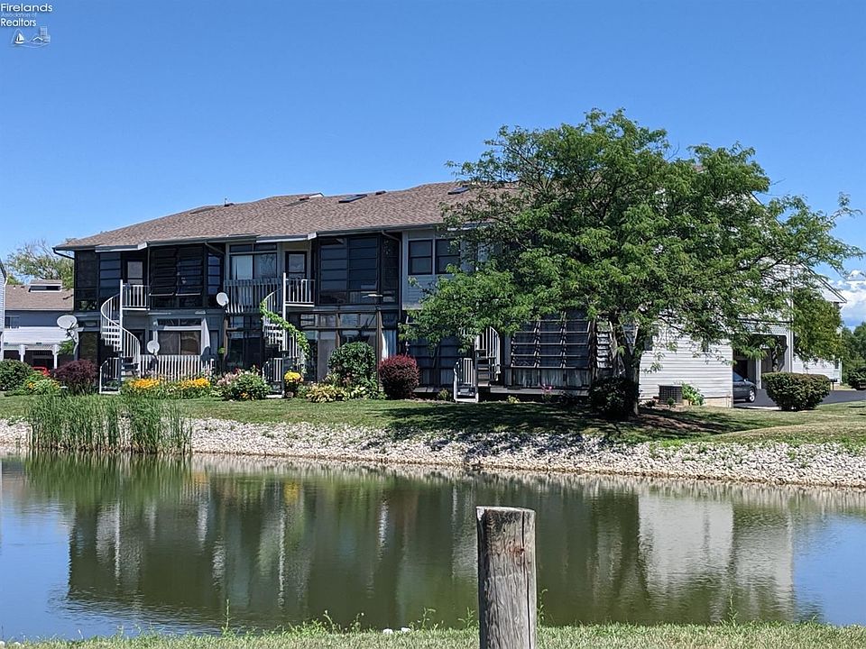 YOUR VERY OWN GETAWAY... First floor on the Pond! 30'deeded dock included. Walk to the pool! Features neutral decor, eating island, and finished 3 season room overlooking pond. Kitchen with newer appliances. Sliding doors off bedroom and living room lead to 3 season room. Storage room & carport. Be on Lake Erie in minutes by boat. Pool and tennis courts to enjoy. Fish cleaning stations. Live year round, rental or vacation get away.<br>