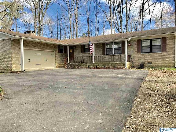 Country living but yet in the city limits, property is part inside Guntersville city limits and part in the county. Beautiful private level land with deep spring fed pond, 3 bedrooms, 2 bathrooms approx 2200 sqft, fresh paint, new tile floor in the kitchen, all kitchen appliances remain, new counter tops, new hot water heater, wood burning fireplace (sellers have never used it) 2 car garage is used for extra bedrooms but can easily be turned back into garage space