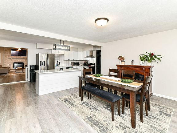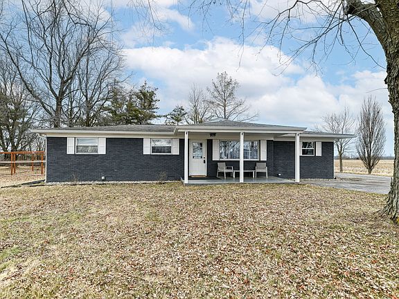 Charming 3BR/2.5BA brick/vinyl ranch nestled on 1.01 Acre lot. Step in from the covered front porch. Dining Rm & Kitchen w/Quartz c-tops, Breakfast bar/island, planning desk & SS appliances. Great Room w/WB FP and access to 10x8 enclosed patio. Master Suite w/electric fireplace, private bath w/Dbl sinks & walk-in closet. BR 2, Full bath, BR 3 w/private half bath and Laundry Rm. 2-car detached garage. Backyard has 2 sections fenced, one w/dog house and one w/pavilion, unfenced area has Storage building w/covered deck attached. Move in and make home!