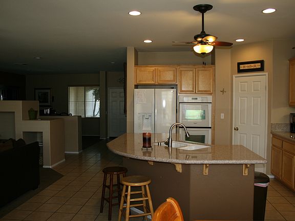Beautiful 4 bed 2 bath single story Eastvale/Corona Home For Rent $2400 mo. This home is ready to move in with open floor plan, roomy upgraded kitchen opens to living room with granite counter tops, back splash, double ovens and walk in pantry. living room has a cozy fireplace with room for watching TV by the fire. there is a formal dining room off the entry way. Master bedroom has large walk in closet, and master bath has double sinks, oversize bath tub and separate glass shower area. The home has tile entry with carpet in family room and bed rooms.3 car garage with Epoxy flooring and custom cabinets and work bench/area. Back yard is large with patio and patio cover. Plenty of grass for kids to run and play--also features custom tree house swing-set in back yard. for pets please submit.