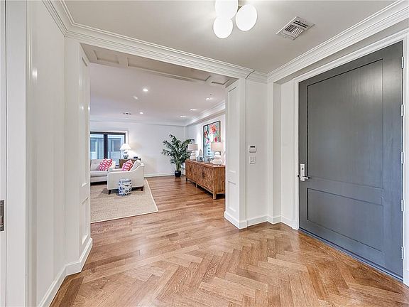 Find luxury within the walls of this exclusive Grandmark home. Boasting 2 Bedrooms and 3 Full Bathrooms, this single-story unit has everything you have ever wanted or wished for in a residence. Details like the herringbone pattern in the entryway or the private putting green in the backyard, make the home uniquely lavish. Four-panel sliding doors separate the dining room and kitchen for a formal entertaining option as the upscale kitchen delivers a gracious space for prep. A full-sized office, 3 private patios, one of which is equipped with an outdoor kitchen, and the full gamut of high-end appliances & fixtures will elevate your lifestyle. Thermador appliances, Miele washer/dryer, Lutron lighting, Lutron remote power shades, spray foam insulation, tankless water heater, and high-efficiency HVAC are just a few of the included features. This all-inclusive way of life extends to your guests. Two completely furnished guest suites are located on-site at the Grandmark Guesthouse.