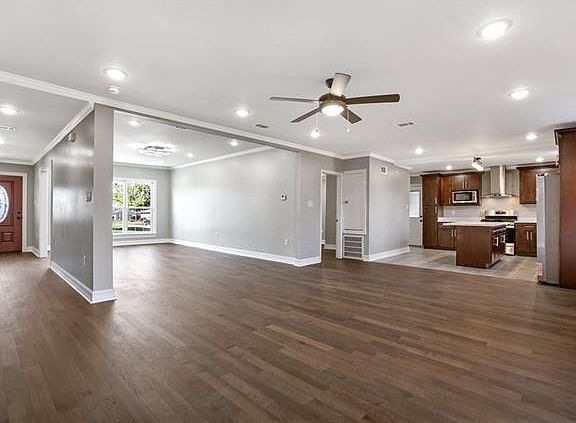 Location, Location, Location! Newly Renovated 4 bedroom and 3 bathrooms completely. Stainless steel appliances include refrigerator, microwave, dishwasher & stove. Very spacious for the family to have their own space. Comes complete with pool table ready to play. This home comes with 2 two primary bedrooms with primary bathrooms, one on each end of the home. Complete renovation includes roof, appliances, flooring, lighting, ac unit, plumbing, electrical. House is for Lease or for sale. Possession date is Sept 1st 2025.