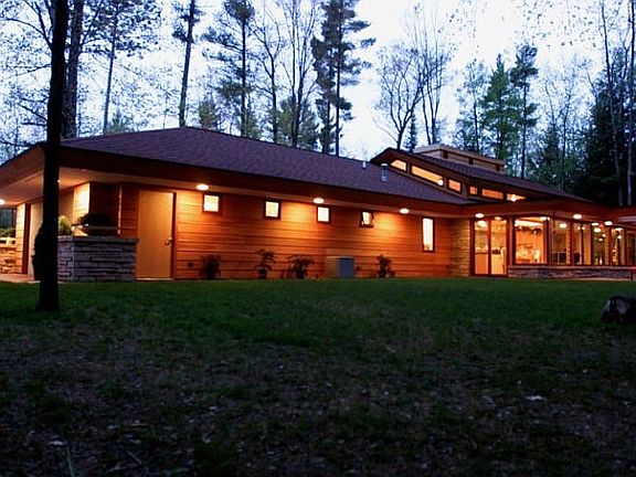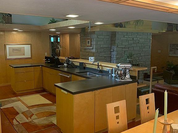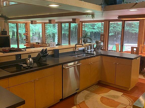 A truly unique Frank Lloyd Wright inspired home Hand chiseled Sandstone and Cypress exterior. 57 windows. Custom built light fixtures and furniture that belong to the home. Custom built in cabinetry in every room! This home was featured in the Frank Lloyd Wright and Like tour in 2006. If you love to live in nature and feel that you are a part of it, this home is for you.