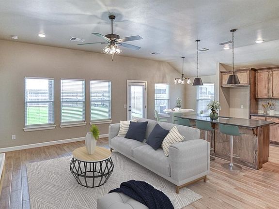 Craftsman style home in the Moore School District. The open living/dining layout is great for entertaining, while offering a split plan to create distance between the primary suite and secondary bedrooms. The kitchen features stainless appliances with gas cook range, quartz countertops and island, tiled backsplashes, and large walk-in pantry! The primary suite offers a nice-sized walk-in closet and tiled stand-up shower. The numerous windows offer tons of natural light throughout the living space for a brighter feel! You also have a nice-sized covered back patio and fully fenced yard for outdoor enjoyment. Abbot Lake community amenities include a pond, walking trails, splashpad and playground! Owner licensed.