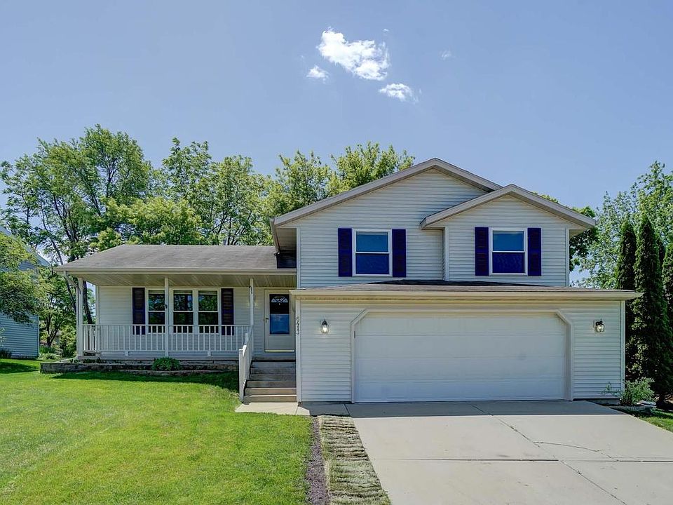 Showings 4/13. Welcome Home to this well maintained tri-level home with vaulted ceilings, large maintenance free deck, and a 4th room perfect for an office. Main level has wood floors & vaulted ceiling living room open to dining and kitchen with newer stainless steel appliances. Walk out to large maintenance free deck for your summer parties! Half flight of stairs up leads to 3 bedrooms. Primary has walk-in closet with built-in shelves and ensuite bath with updated walk-in tiled shower! Half flight of stairs down leads to large family room with gas fireplace and half bath with laundry. Bonus 4th room in basement with two closets, one with a wine cellar! New windows (2021), new furnace (2022), water heater (2017), new appliances (2021/22)