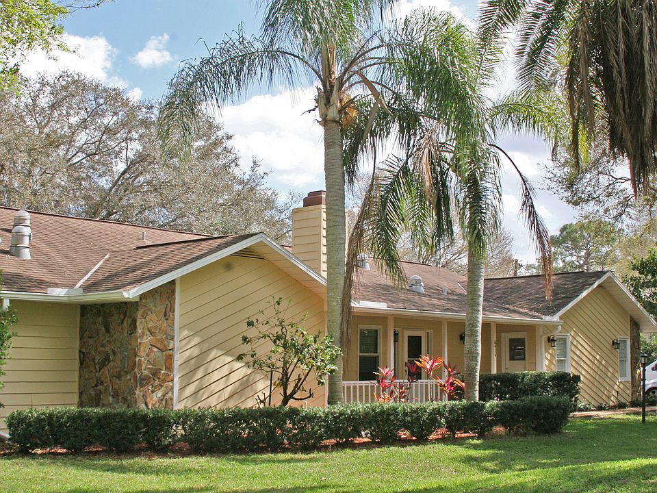 UNIQUE MUST SEE! This charming cozy home located in the highly sought after Braden Woods has been recently renovated, in 2015 with tons of new features. Perfectly situated on over an acre of manicured green space with mature trees and a beautiful full lake view in the back. With a beautiful Ranch style entrance to the home, it starts with an inviting tiled porch, which opens into a spacious, open living room complete with vaulted ceilings, a stunning wood burning fireplace and gorgeous french doors that lead on to the large screened lanai. The spacious formal dining room features built in cabinetry, as well as a pass through from the kitchen. Bright and open, the kitchen has loads of storage and a large center island for the gourmet chef in you with all high end Bosch appliances, and the built in breakfast nook is the perfect place for your morning coffee or brunch while watching the birds on the lake. In the master bedroom you'll find the same beautiful wood vaulted ceilings, built ins, and french doors that lead out to private screened retreat. Enjoy the HUGE master bathroom, which features a separate large Jacuzzi tub & walk in shower, grand-sized walk in closet, as well as a wrap around workout/powder room space. The perfect entertaining area, the screened lanai is very spacious, and leads out to brick patio area overlooking the lake, with a built-in grille and tons of room for family and friends. The other side leads out to a separate shed, orange fruit trees, as well as a full size dock leading over the lake. The 3rd bedroom has a built-in desk and cabinets, perfect for a guest bedroom it does have a closet and still plenty of room for a full size bed as is! Home is currently occupied by owner. PLEASE CONTACT ME, Adam @ 941-284-2024 If interested in info or showing! AGENTS WITH BUYERS WELCOME 3%