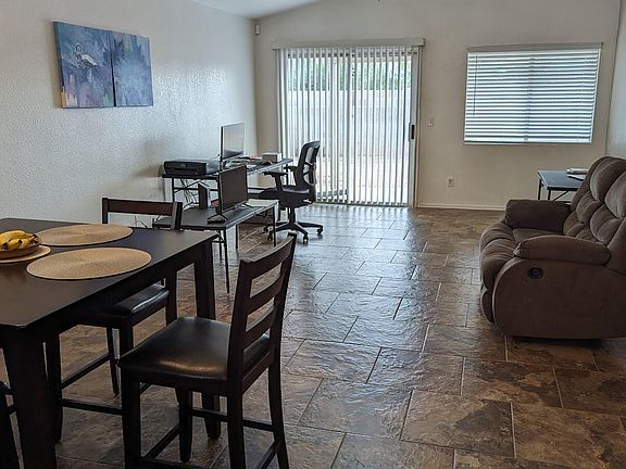 Former model home in the Wilmot Point development. This 3bed/2bath features vaulted ceilings with a Great room design. Dining area is just off kitchen. Galley style kitchen with over the window sink, and nice pantry. No carpet, and all bedrooms have ceiling fans. All appliances stay. 2 car garage with ample shelves for storage. Nice sized backyard with storage shed and covered patio. Good location for Davis-Monthan AFB or just a quick ride to UA and downtown.