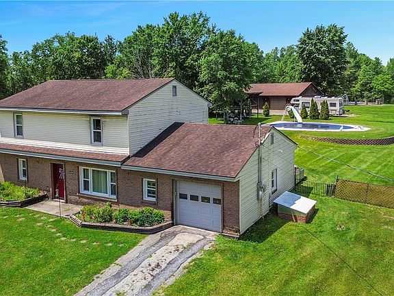 Welcome to this charming 4-bedroom, 2-bathroom conventional-style home set on a beautiful 0.9-acre lot in the desirable Western Reserve Local School District. The first floor features a bright, open dining area that flows into the spacious, updated kitchen with white cabinetry and ceramic tile flooring—perfect for hosting and everyday living. Just off the kitchen is a convenient first-floor laundry room with access to the attached 1-car garage and a rear exit leading to the deck. Also on the main level is a large living area and an updated, accessible full bathroom with a walk-in shower. Upstairs, you’ll find four comfortable bedrooms and a second full bathroom, providing plenty of space to spread out. Step outside and enjoy your private backyard retreat, complete with a heated, in-ground pool and plenty of green space that is great for summer entertaining, gardening, or relaxing in the sun. Also on the property is a detached two car garage, ideal for additional parking, storage, or workshop! With thoughtful updates, generous indoor-outdoor space, and a convenient location with a quiet, country-like setting - this home checks all the boxes! Updates include: new well pump, new HWT, updated electrical (panel/from street), second driveway repaved.