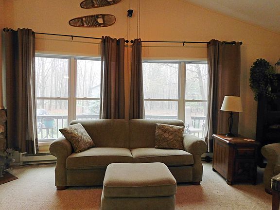 Great Chalet ready to go! 3 bedroom 2 bath chalet on one level. Nice large windows and a patio door to brighten the living room Kitchen has pass through and counter stools to the dining area.Enjoy the Natural Gas fireplace on a chilly night. The fireplace also has a thermostat to control heat to home. Upgraded electric baseboards make a good back up. Master suite and laundry easily accesible. This home has been extra insulated and well taken care of. Super sized attached shed has great possibilites. Enjoy all the perks of Michaywe'. Golf course on site with member discount, Indoor and Outdoor swimming pools, hot tub, tennis courts, Cross Country ski trails, hiking trails & outdoor Volleyball. Area also has the Inn the Woods restaurant open year round and a Pub. Numerous golf courses