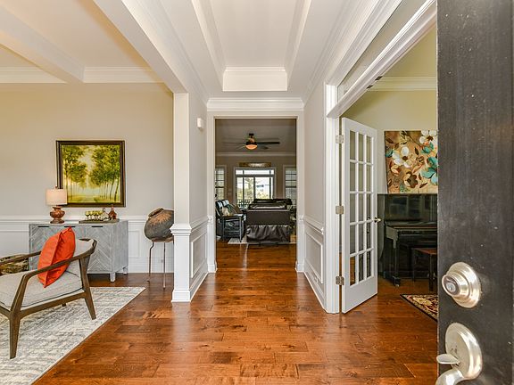 Impeccably maintained, "like new" ranch style home located on a quiet street in a Waterfront Amenity-Rich Resort Style Community. Enjoy sitting on the full front porch, gathering w/ friends on the screened in back porch or entertain around the 10' kitchen island. Home is well appointed and features desirable upgrades such as 10' ceilings, distressed, wide plank hardwoods, extensive decorative moldings, gourmet kitchen, side entry/oversized garage, gas fireplace, built in bookcases, and more! Owner's suite includes tray ceiling, separate shower, soaking tub, dual vanities and extra large walk in closet. If you are searching for a functional, well designed floor plan, "feels like new" home with private (no homes behind you) back yard that is located in a prime location just 7 minutes to 485 then this is a MUST SEE. This home is also situated just 2 blocks from the community amenities and waterfront area allowing for easy access to enjoy all that The Vineyards on Lake Wylie has to offer!