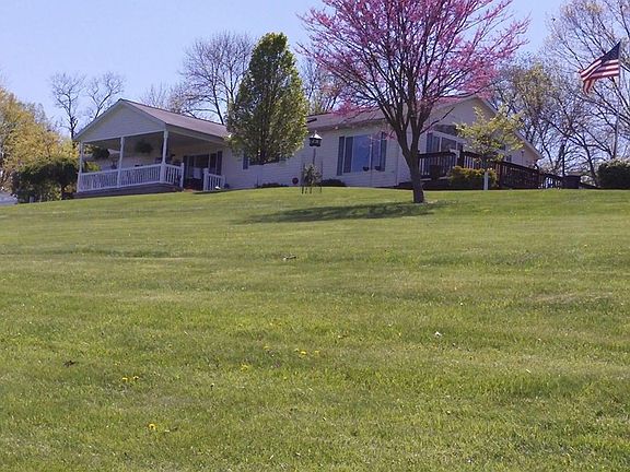 6414 Jonathan Ln, Albany, OH 45710. Country living just outside of town! Located on 5.47 acres with the most amazing valley view in the whole area - lots of sky up on the ridge! Located with privacy and yet there are neighbors. This spacious ranch home has 2340 sq ft of light-filled open floor plan living. The living room with cathedral ceilings, huge windows and gas fireplace, is open to the informal dining area and the huge kitchen with all newer appliances. Also off the kitchen is another sitting room or formal dining room with door onto the covered front porch and the best view in the county! The large master bedroom has spacious closets and an ensuite bath with a soaking tub under the skylight and separate shower. Two more bedrooms share a full bath. Plus there is another family room, office, storage room and 1/2 bath. Attached 1.5 car garage. New roof 2021, all new windows 2017. Outside there is gathering space on the porch, 2 patios with fire rings, plus a massive party deck. Lots of parking area. AND a detached 2 car garage with attached fully conditioned 1120 sq ft workshop, gym, or hobby area. And it also has a porch with a view! Alexander Schools. 2 miles to Albany & US 50,15 min.to Athens and Ohio U.