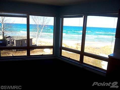 SCHEDULE A SHOWING ONLINE AT: showmojo.com/lh/be94eb20b6 Unit Available October 2019 Thru May 2020 The home, being intentionally built as a generational home will give you the privacy and space you desire while being together as a family all under one roof. The home boasts 5 bedrooms, 5 bathrooms, and 3 kitchens. INSIDE THE COTTAGE When you walk into the home, you will enter on the main floor, and into the dining room, kitchen, and living area. A Queen bedroom and full bathroom are located off the main living area. A sitting room, with television, games and books provides a walk-thru to the second bedroom, which includes both a Queen and Full bed with an adjoining bath and loft area. The loft features both a Full and Twin bed. Floor two includes a second full kitchen, dining and living area with a pull-out Full sofa sleeper, and a private balcony accessible from both the kitchen and the outside. A bedroom with a Queen bed and two full bathrooms, one with separate shower room and laundry facilities makes it perfect for a second family. Floor three is set up as a studio apartment with a third kitchen, living area with Full pull-out sofa sleeper and full bath with shower/tub combo. A second laundry room is located on the 3rd floor. OUTDOOR SPACE Enjoy the sunset from any of the amazing decks, including a completely separate wooden look-out over Lake Michigan. You will have plenty of space to park and play in the additional grassy lot to the right of the home. SLEEPING The home sleeps 17. All bed linens and bath linens are provided. Bedroom #1 Queen, main 1st floor Bedroom #2 Queen & Full, main 1st floor Bedroom #3 Full & Twin, main floor loft Bedroom #4 Queen, 2nd floor Living Room Full pull-out sofa, 2nd floor Bedroom #5 Queen, 3rd floor Living room Full pull out sofa, 3rd floor EATING The main dining area located on the first floor will seat 10 at two adjacent tables and an additional five at the center kitchen counter bar. The main kitchen area is fully equipped with all cookware, dinnerware, utensils and lots of extras like a waffle maker, blender, toaster and food processor. A standard drip coffee pot is also conveniently located in each of the kitchens on every floor. THE LOCATION You will feel like you are away from it all on your own slice of Lake Michigan beach, but in reality you are only a ten minute drive to downtown Manistee. Manistee offers many restaurant options, breweries, shopping and a beautiful riverwalk along the Manistee River out to Lake Michigan.
