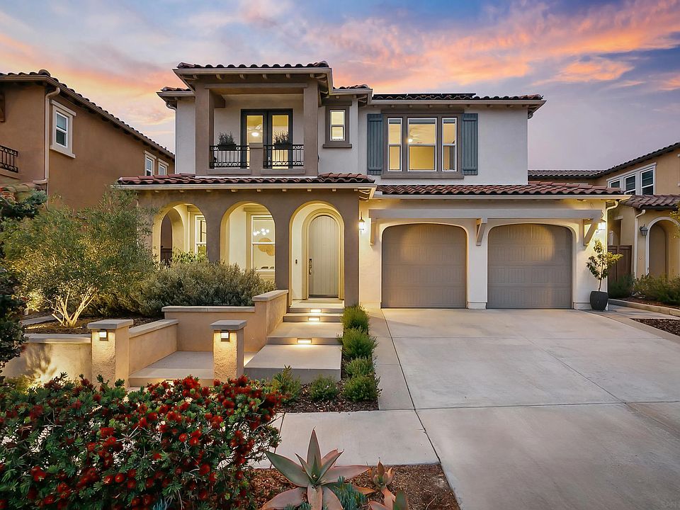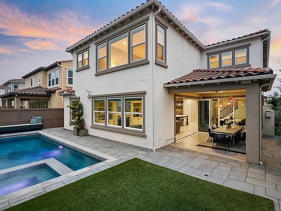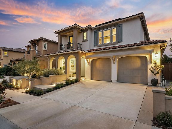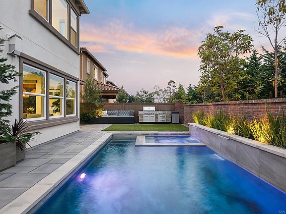 Exquisite residence nestled in the highly coveted community of Pacific Highlands Ranch, within the esteemed Solana Beach School District. This home has been meticulously modernized to enhance your living experience. Every aspect of this unique retreat has been carefully considered, from the captivating interior to the exterior oasis, complete with a saltwater pool/spa and owned solar panels. Positioned ideally with no rear neighbors, this property showcases numerous recent enhancements, including expansive panoramic stacking doors, motorized shades, two fireplaces, and comprehensive home automation technology. The heart of the home is the stunning gourmet kitchen with a JennAir professional appliance suite, walk-in pantry, and a spacious center island with seating. The lower level features a full bedroom, bathroom, and a versatile bonus room/office with built-ins, while the inviting living room seamlessly connects indoor and outdoor spaces, perfect for al fresco dining. Upstairs, you'll find a generous loft area, a convenient laundry room, and a luxurious primary ensuite with breathtaking views and spa bath with separate soaking tub, shower and large walk-in closet. Additionally, the property offers a 3-car garage with an epoxy floor, EV charging, a tankless water heater, and storage.