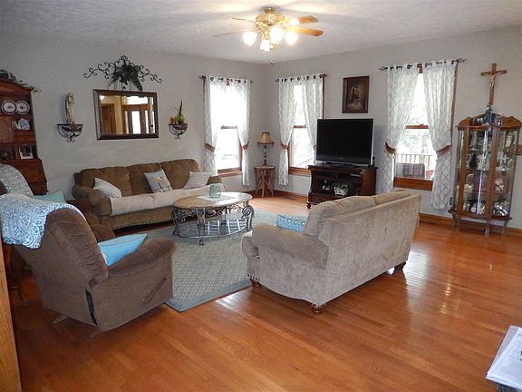 Owen County 1 1/2 Story on 12+ acres. Like new 5 bedroom, 3 bath , high quality home on 12.84 highly productive acres. Very large rooms throughout. Huge living room, fully equipped country kitchen with custom cabinets. Main level master suite. Hardwood floors throughout with porcelain in kitchen and ceramic in baths. Solid 6 panel doors and oak trim. Spacious covered front porch is 40'x10'. This home has a very functional floor plan that is super livable. Shelter house has outdoor wood furnace and cookout area. House also has geothermal heat. Chicken house/storage shed and fenced area approximately 2 acres for horses, cattle, chickens. Equipment shed. Extensive garden beds, fruit trees, berry bushes. This home is immaculate and shows like new. *Additional 2.89 acres & 1,008 s.f. house available for an additional $50,000.
